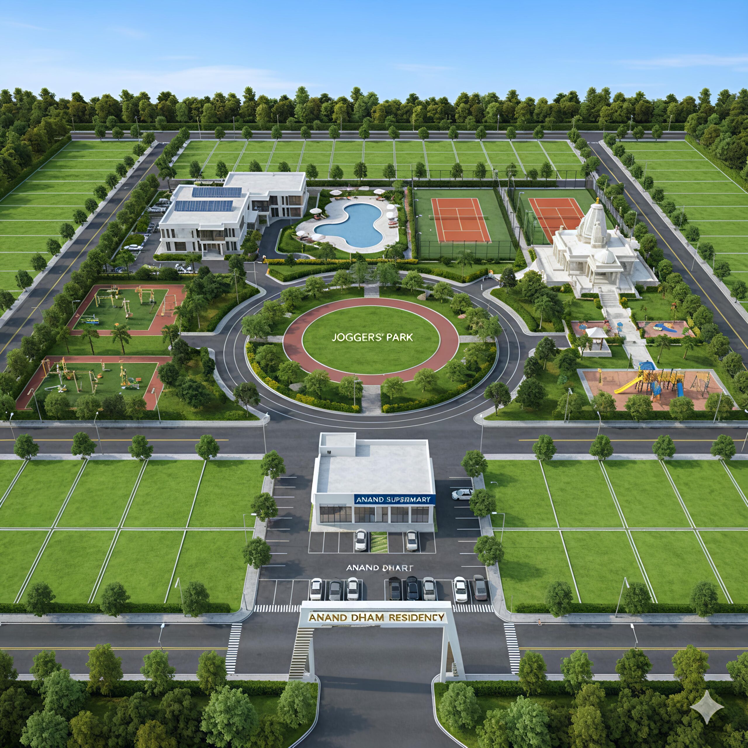 Our mission is to design RERA-compliant gated communities like Anand Dham Residency that provide not just housing but a complete lifestyle — with schools, healthcare, green spaces, and modern amenities. We are committed to eco-conscious development, transparent practices, and investor-friendly growth while also generating local employment, supporting small businesses, and building communities based on trust.